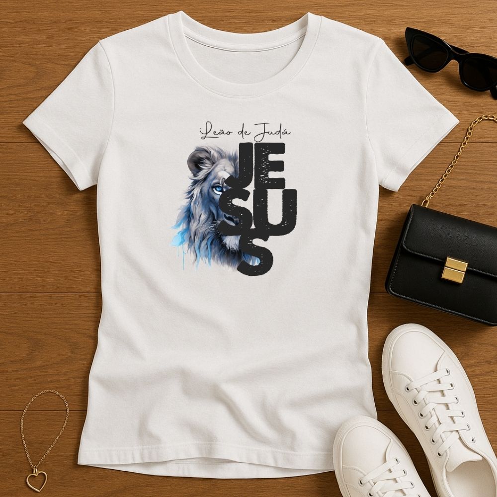 Baby Look Feminina Cristã Branca Jesus Leão